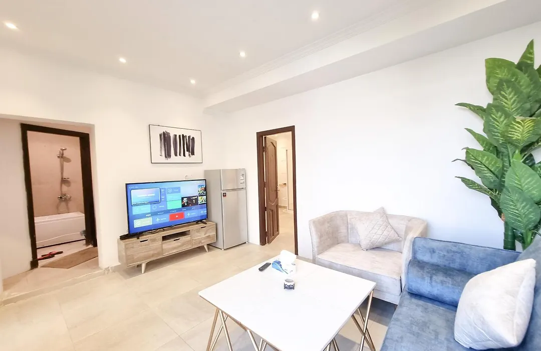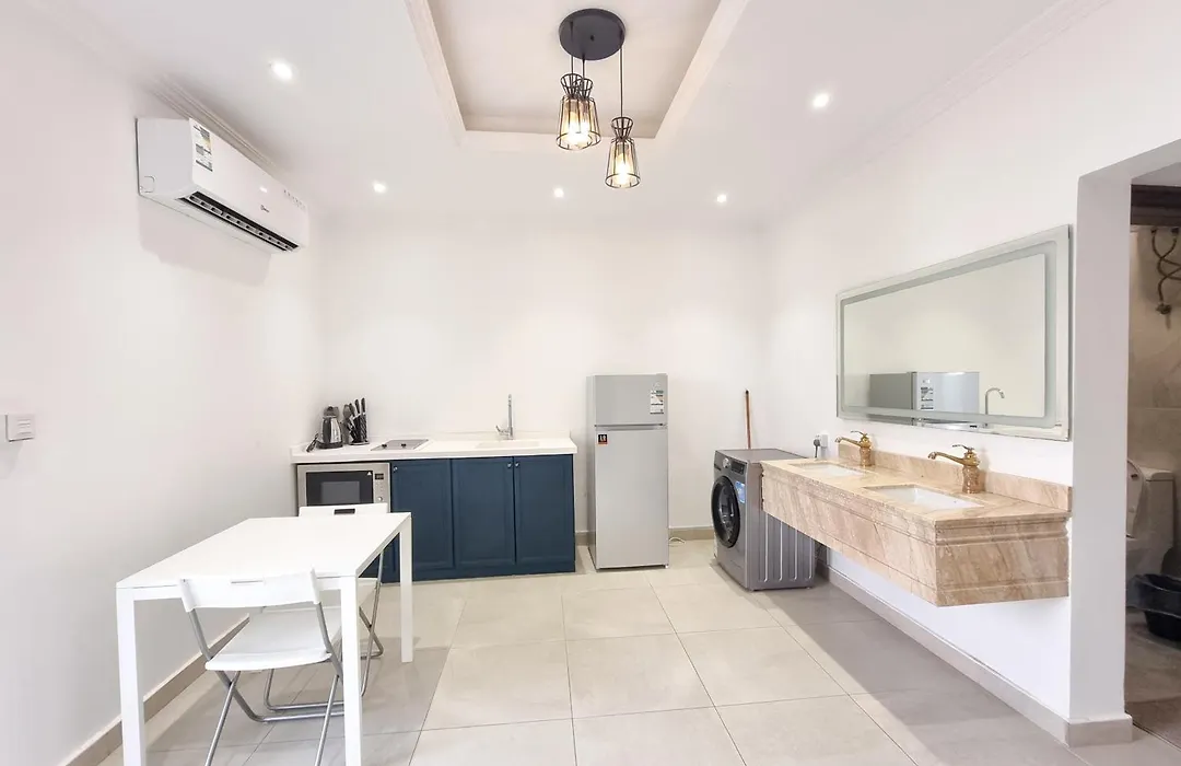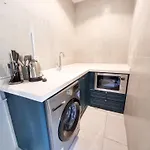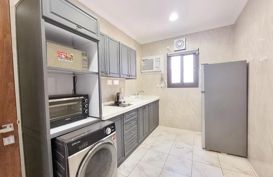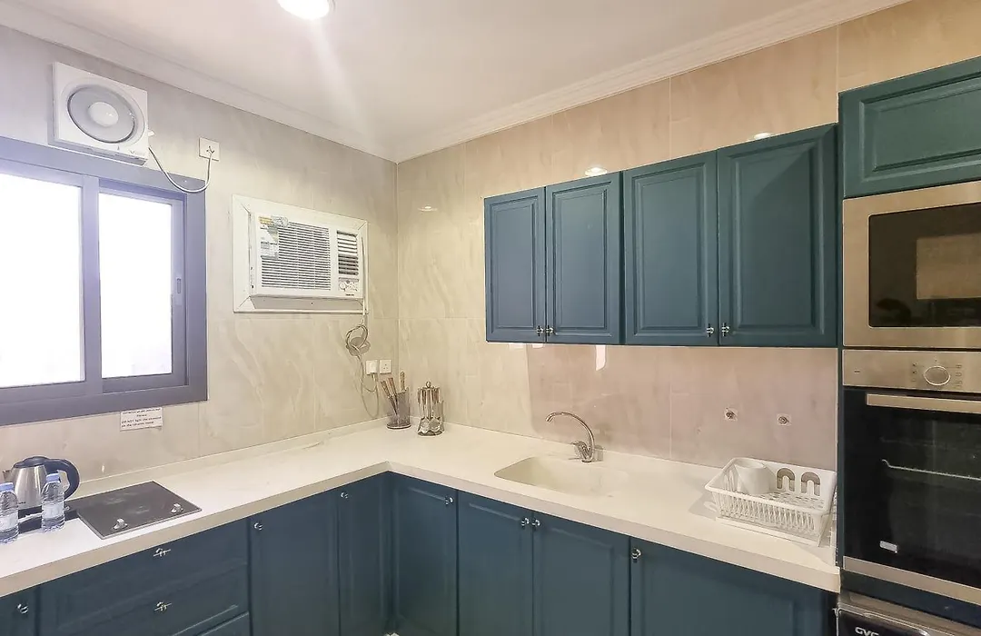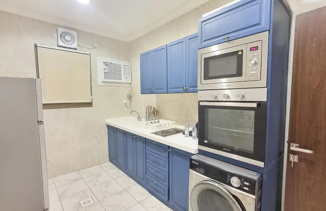 تضمّ الشقة لوازم إعداد القهوة والشاي والمطبخ الكامل مع الغلاية الكهربائية والمجمدة والفرن.
